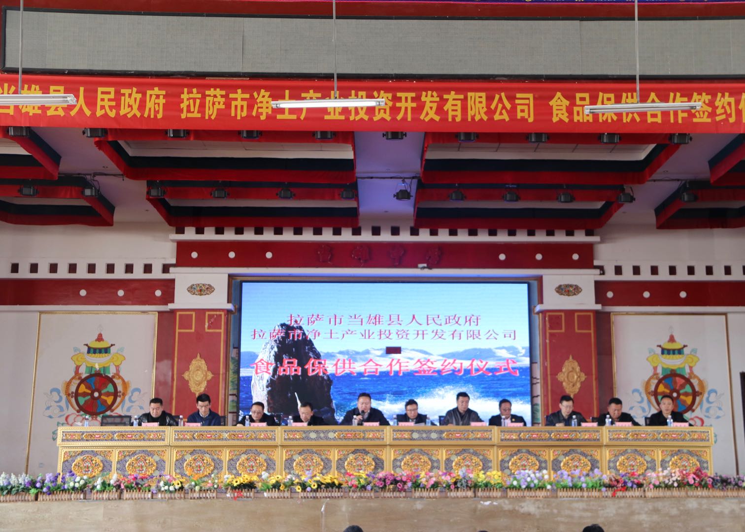 2018年4月19日,拉薩市當(dāng)雄縣政府與拉薩市凈土公司舉行食品保供合作簽約儀式。當(dāng)雄縣縣長(zhǎng)其美次仁及縣教育系統(tǒng)相關(guān)負(fù)責(zé)同志、市凈土公司總經(jīng)理格勒巴桑及相關(guān)子公司負(fù)責(zé)同志出席簽約儀式。