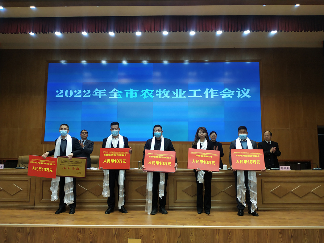 2022年4月14日全市農(nóng)牧業(yè)會(huì)議在市政府召開,我集團(tuán)被評(píng)定為“2021-2023年度拉薩市市級(jí)農(nóng)牧業(yè)產(chǎn)業(yè)化經(jīng)營(yíng)龍頭企業(yè) ”,會(huì)上進(jìn)行了授牌儀式并頒發(fā)獎(jiǎng)勵(lì)資金。