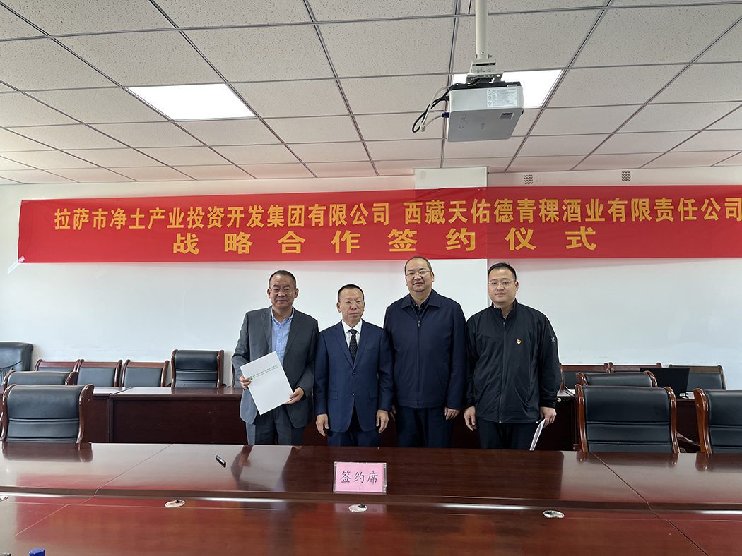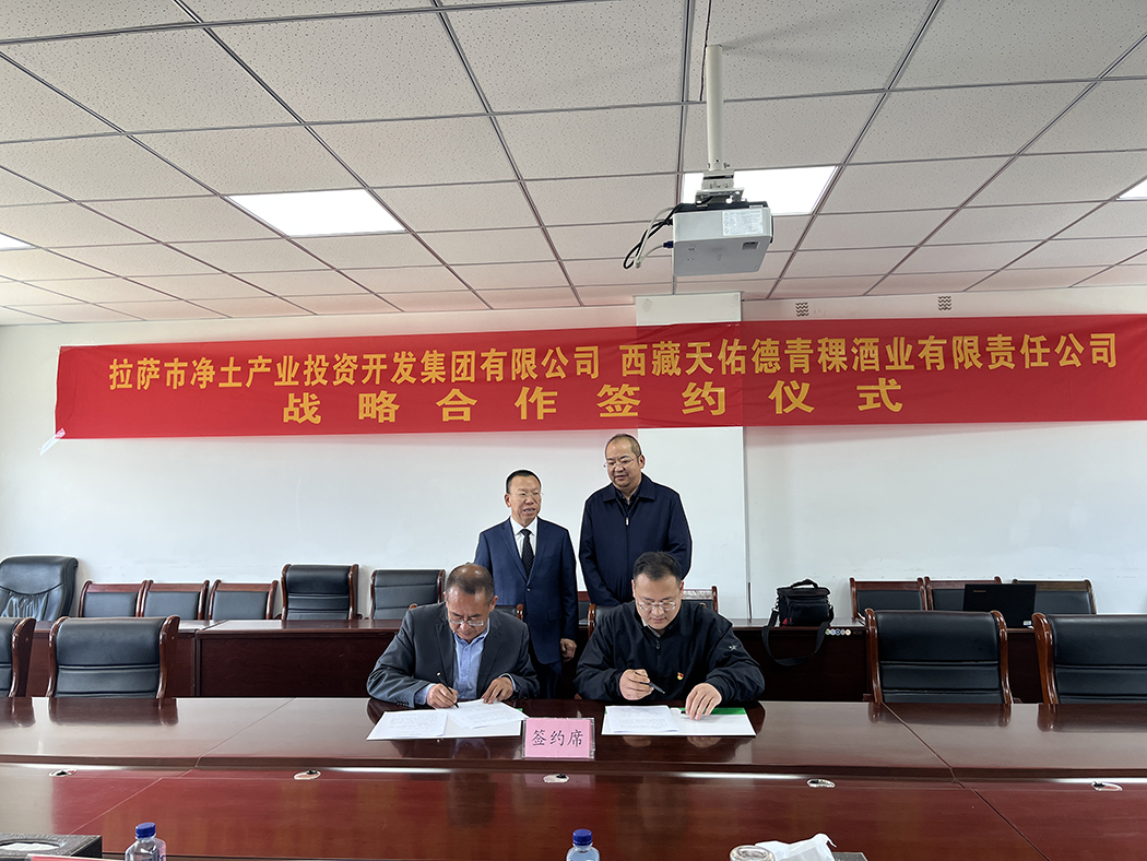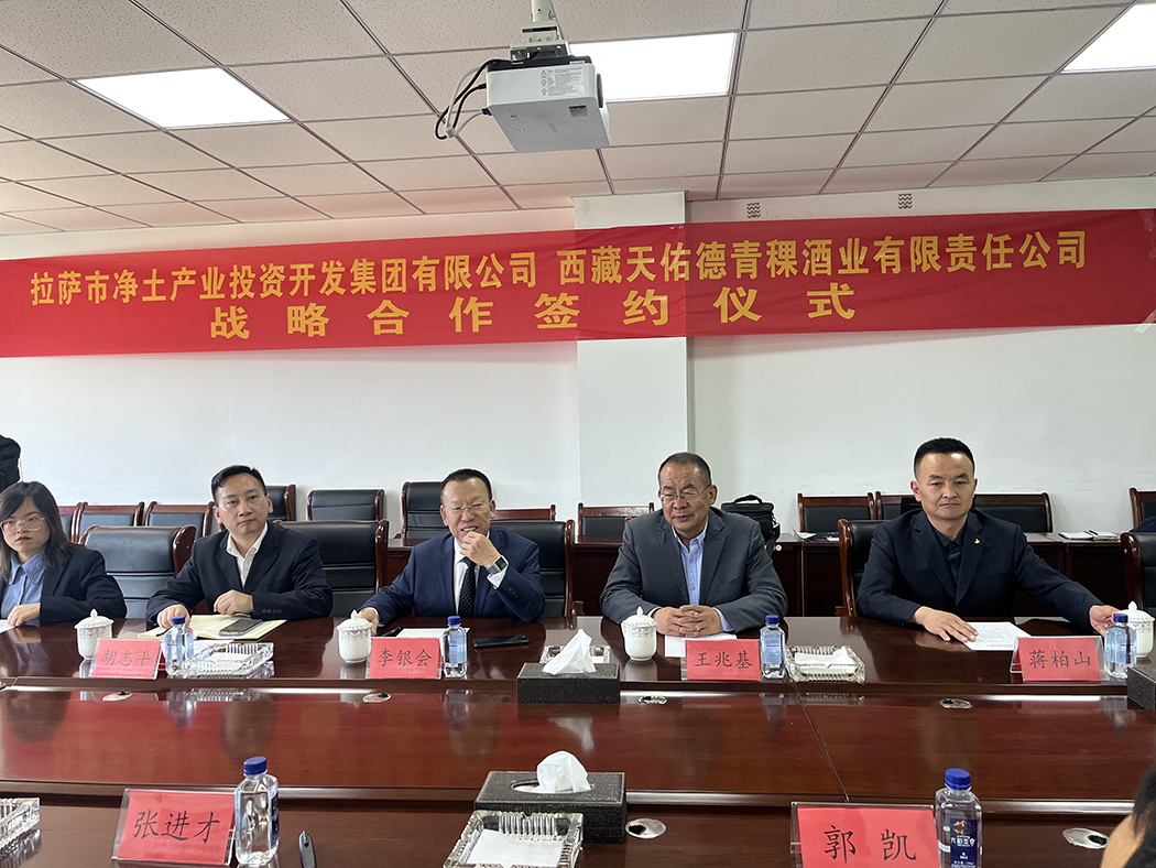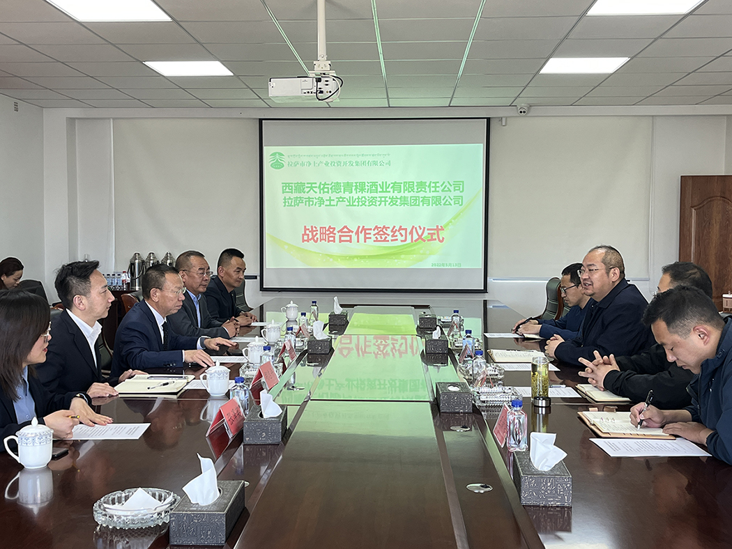 2022年5月13日上午,拉薩凈土集團(tuán)與西藏天佑德青稞酒業(yè)有限責(zé)任公司簽訂戰(zhàn)略合作協(xié)議并進(jìn)行業(yè)務(wù)座談,集團(tuán)黨委書(shū)記、董事長(zhǎng)張進(jìn)才主持簽約儀式。
