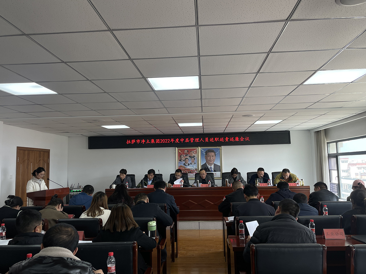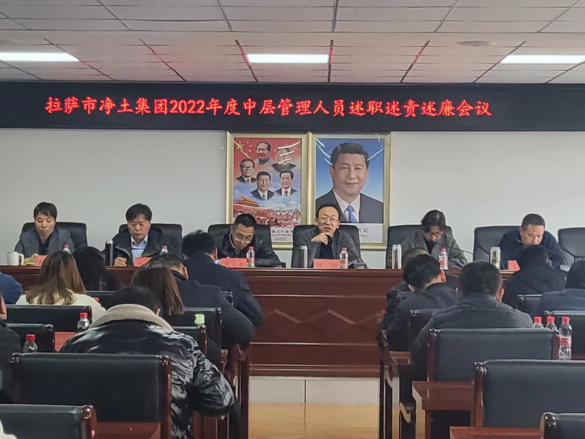 為深入學(xué)習(xí)宣傳貫徹黨的二十大精神,盤(pán)點(diǎn)總結(jié)2022年工作成果、謀劃推進(jìn)2023年目標(biāo)任務(wù),根據(jù)集團(tuán)黨委安排部署,4月10日下午,拉薩市凈土集團(tuán)組織召開(kāi)2022年度中層管理人員述職述責(zé)述廉工作會(huì)議。集團(tuán)在家班子成員、各部門(mén)正副職、各子公司經(jīng)營(yíng)班子共計(jì)38人參加會(huì)議。會(huì)議由集團(tuán)黨委副書(shū)記、紀(jì)委書(shū)記達(dá)娃央金主持。