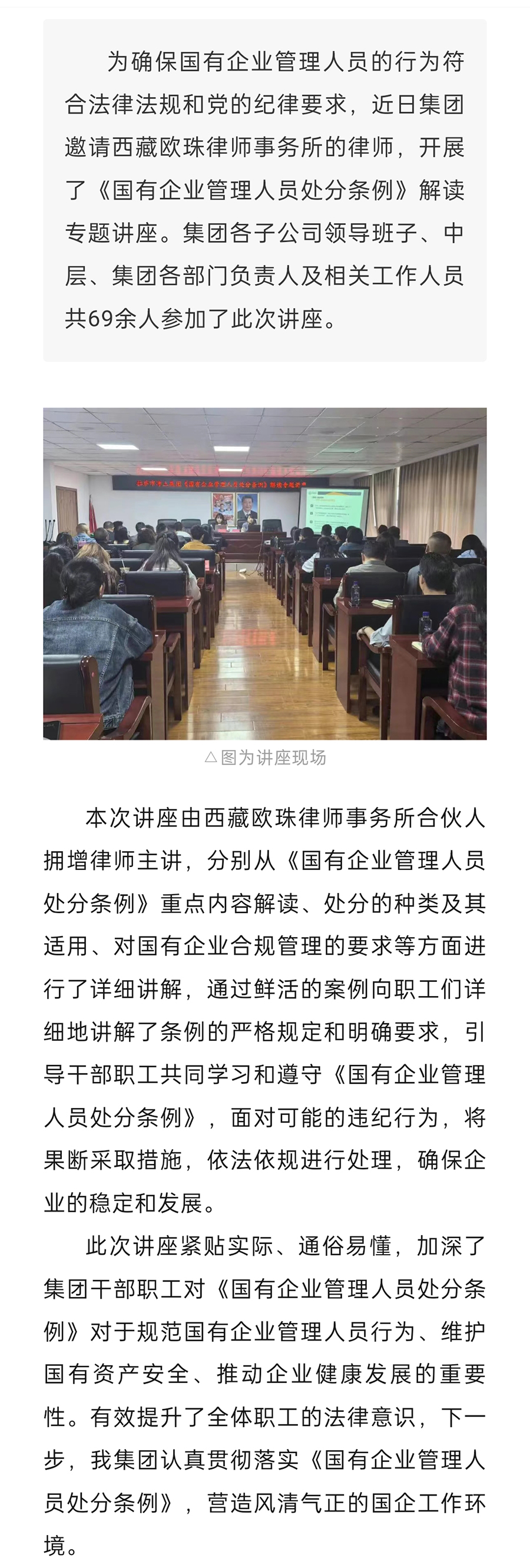拉薩市凈土集團(tuán)開展《國有企業(yè)管理人員處分條例》解讀專題講座