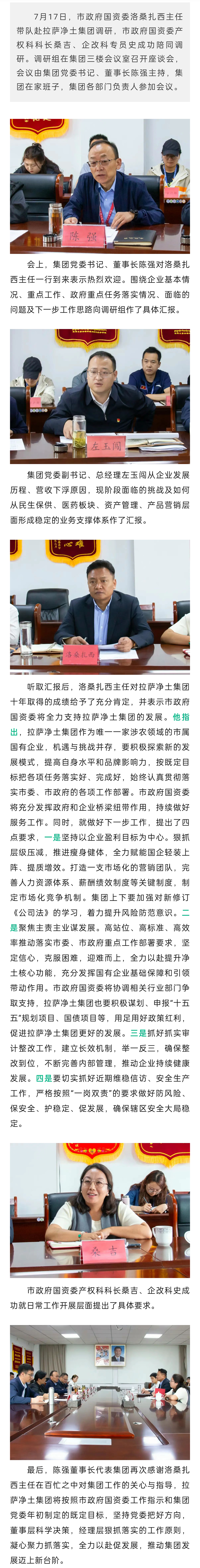 拉薩市政府國(guó)資委洛桑扎西主任一行赴拉薩凈土集團(tuán)開(kāi)展調(diào)研