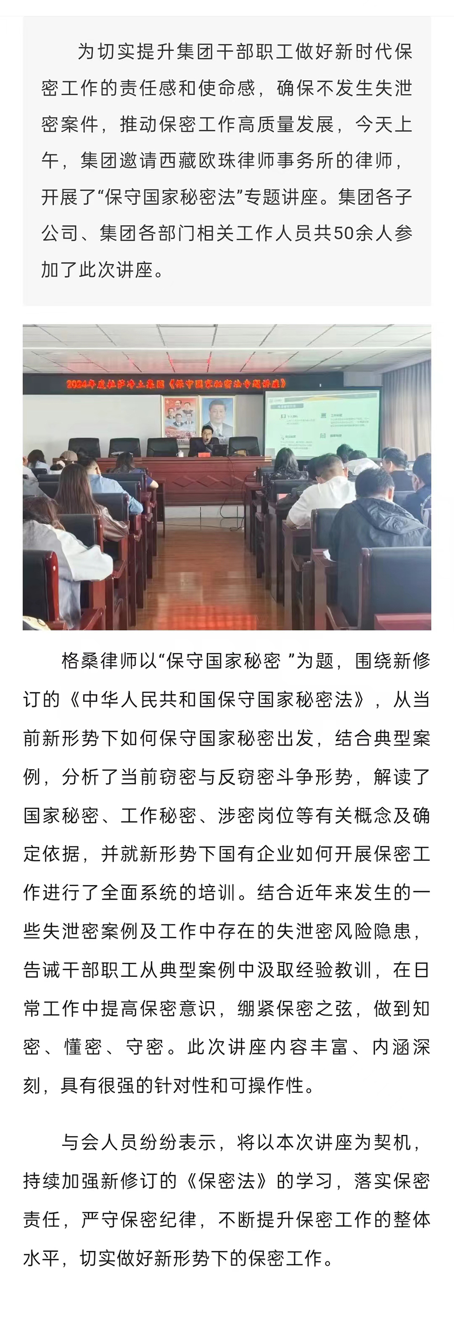 拉薩凈土集團(tuán)開展《保守國(guó)家秘密法》專題講座
