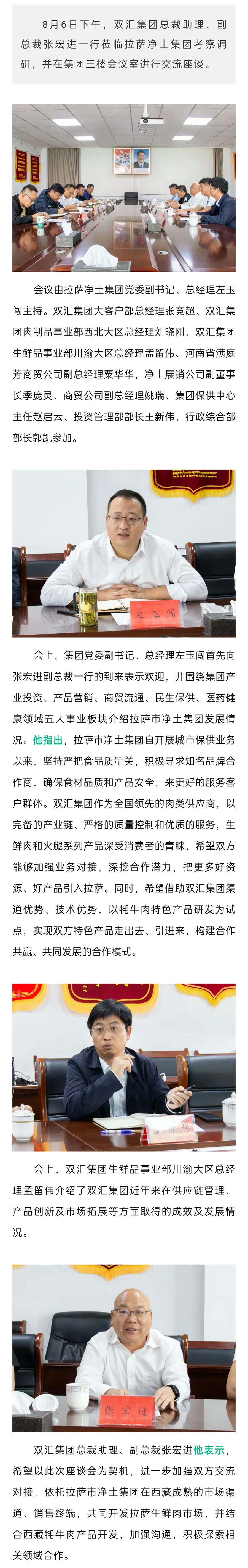 中國(guó)雙匯集團(tuán)張宏進(jìn)副總裁一行 赴拉薩凈土集團(tuán)考察調(diào)研