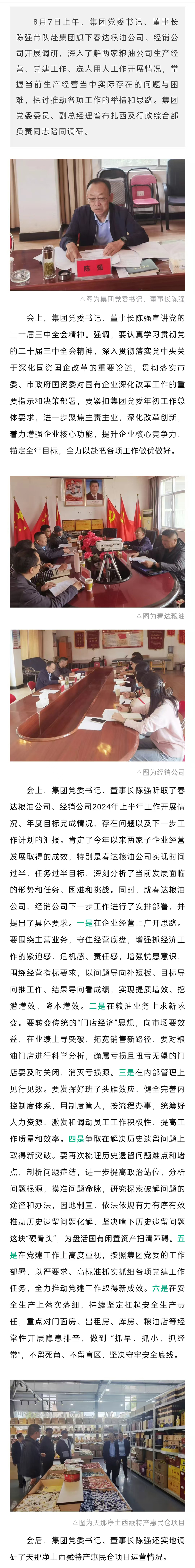 集團(tuán)黨委書記、董事長(zhǎng)陳強(qiáng)帶隊(duì)赴春達(dá)糧油公司、經(jīng)銷公司開展實(shí)地考察調(diào)研工作