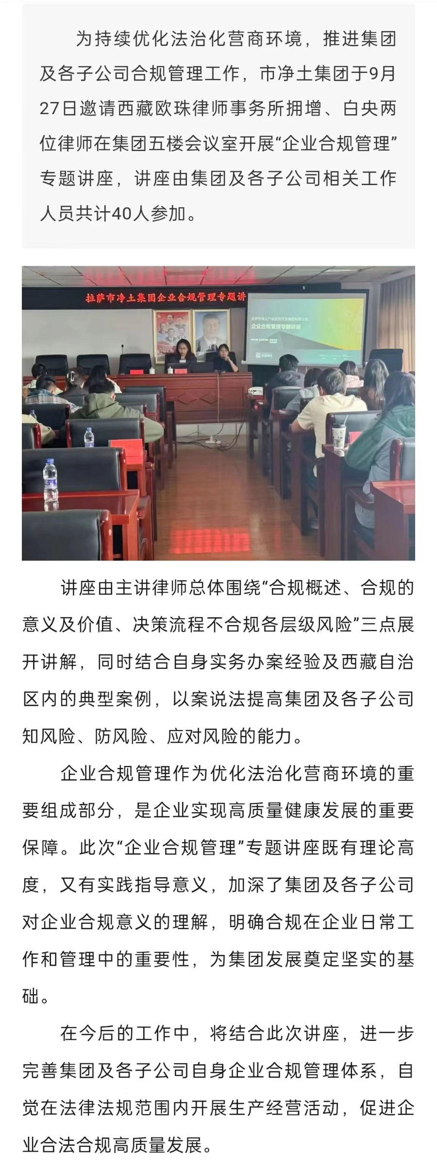 拉薩市凈土集團(tuán)開(kāi)展“企業(yè)合規(guī)管理”專(zhuān)題講座