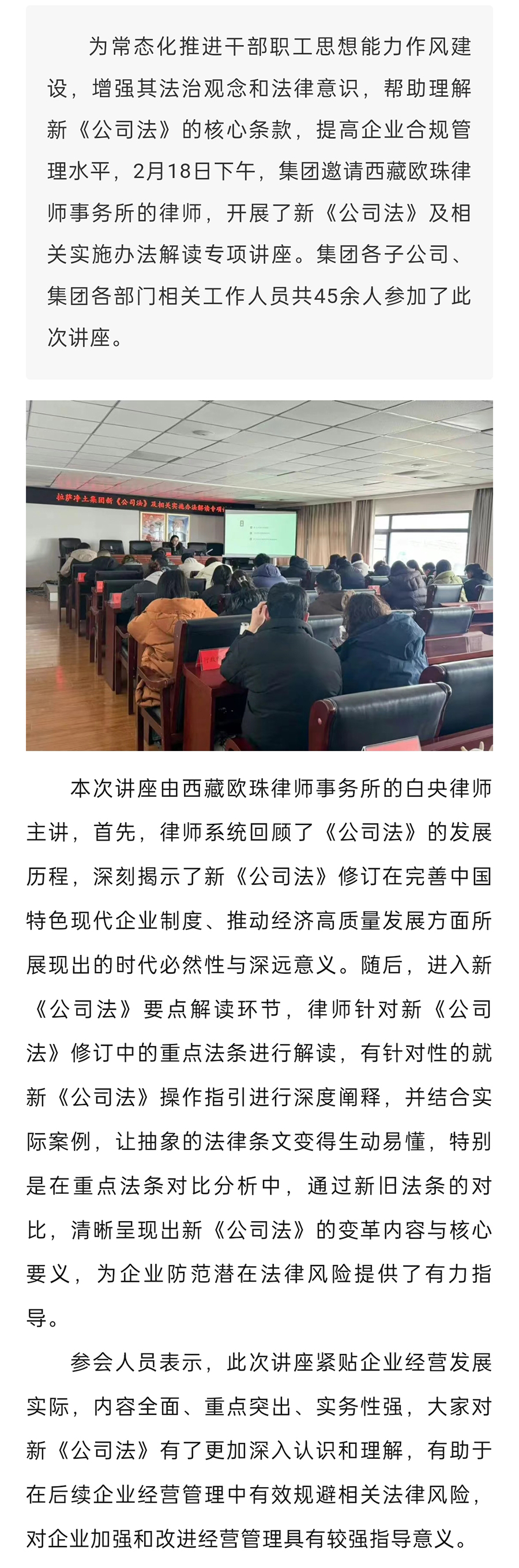集團(tuán)開(kāi)展新《公司法》及相關(guān)實(shí)施辦法解讀專(zhuān)項(xiàng)講座