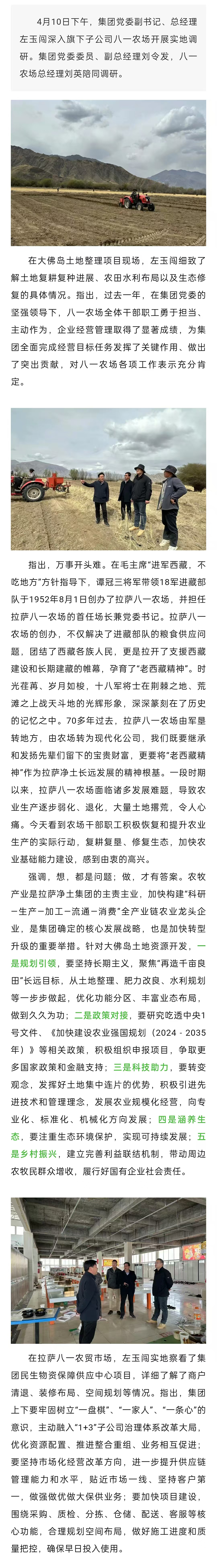 集團黨委副書記、總經理左玉闖赴八一農場公司實地調研