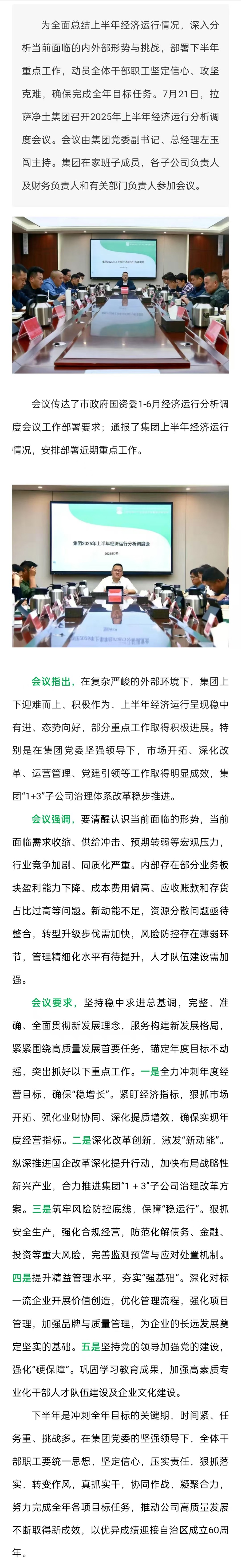 錨定目標(biāo) 加壓奮進(jìn) 以實(shí)干實(shí)績(jī)推動(dòng)高質(zhì)量發(fā)展邁上新臺(tái)階——拉薩凈土集團(tuán)召開(kāi)2025年上半年經(jīng)濟(jì)運(yùn)行分析調(diào)度會(huì)議