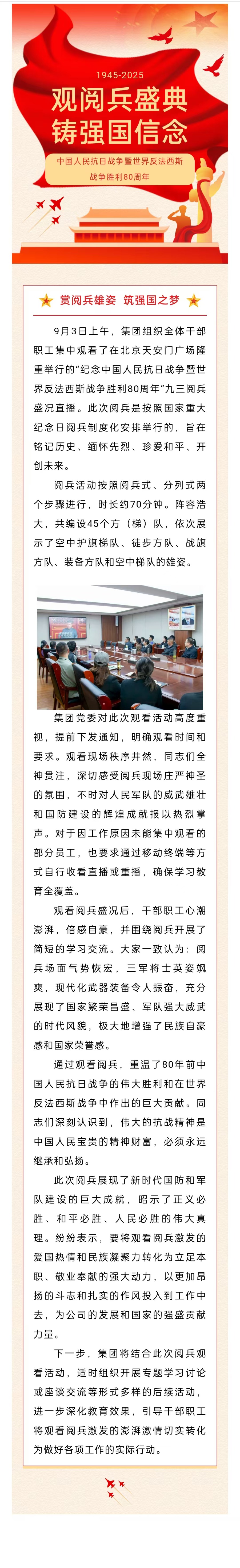 集團(tuán)組織集中觀看紀(jì)念中國人民抗日戰(zhàn)爭暨世界反法西斯戰(zhàn)爭勝利80周年大會