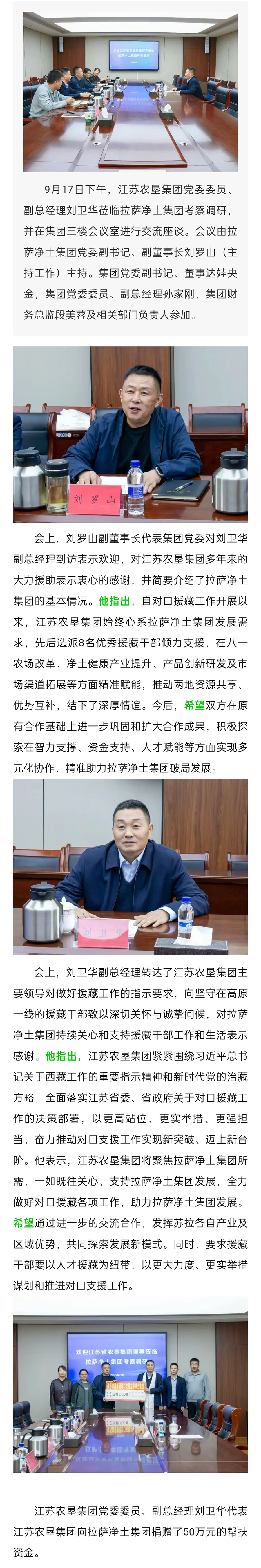 江蘇農(nóng)墾集團黨委委員、副總經(jīng)理劉衛(wèi)華赴拉薩凈土集團考察調(diào)研