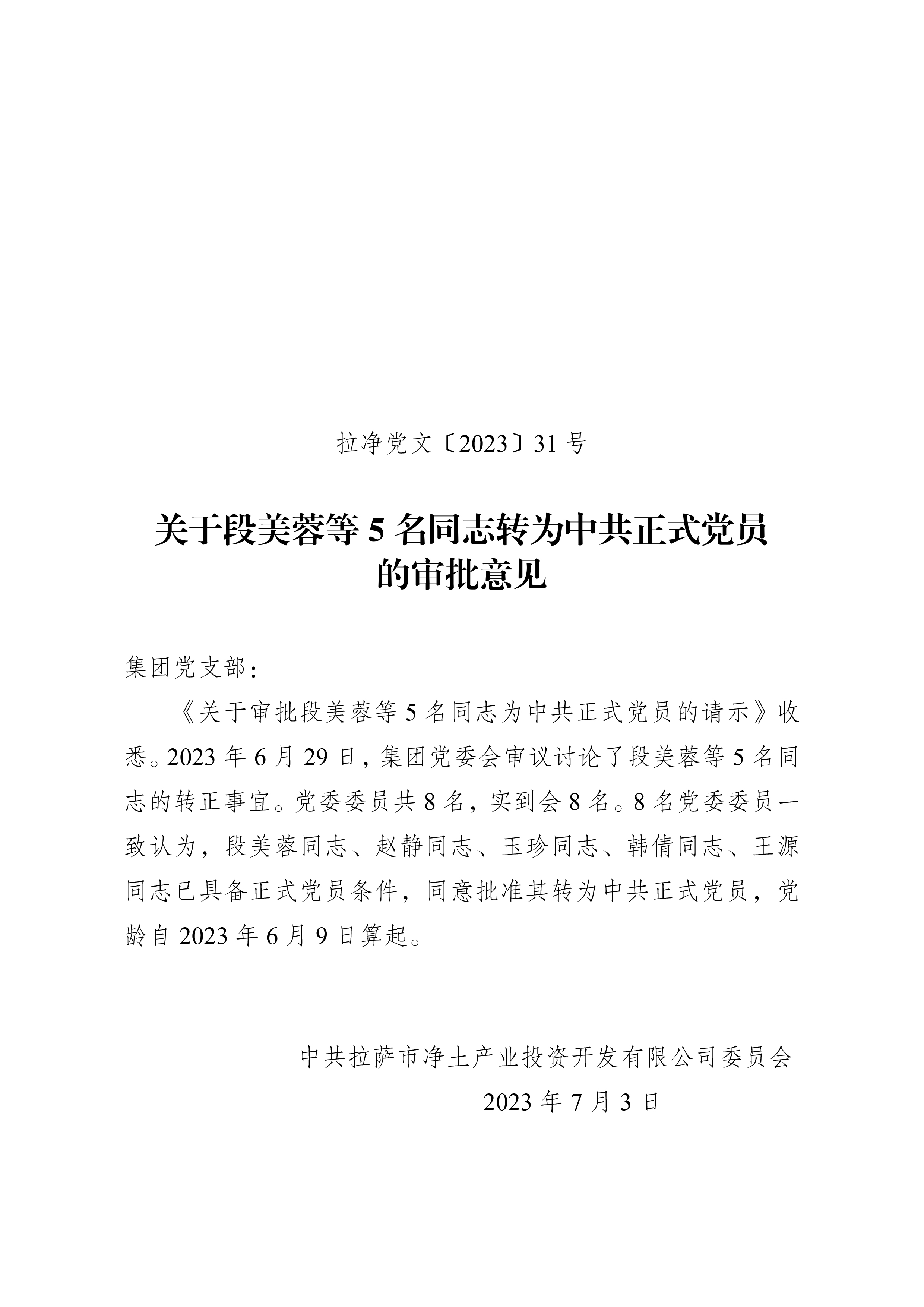關(guān)于段美蓉等5名同志轉(zhuǎn)為中共正式黨員的審批意見(jiàn)