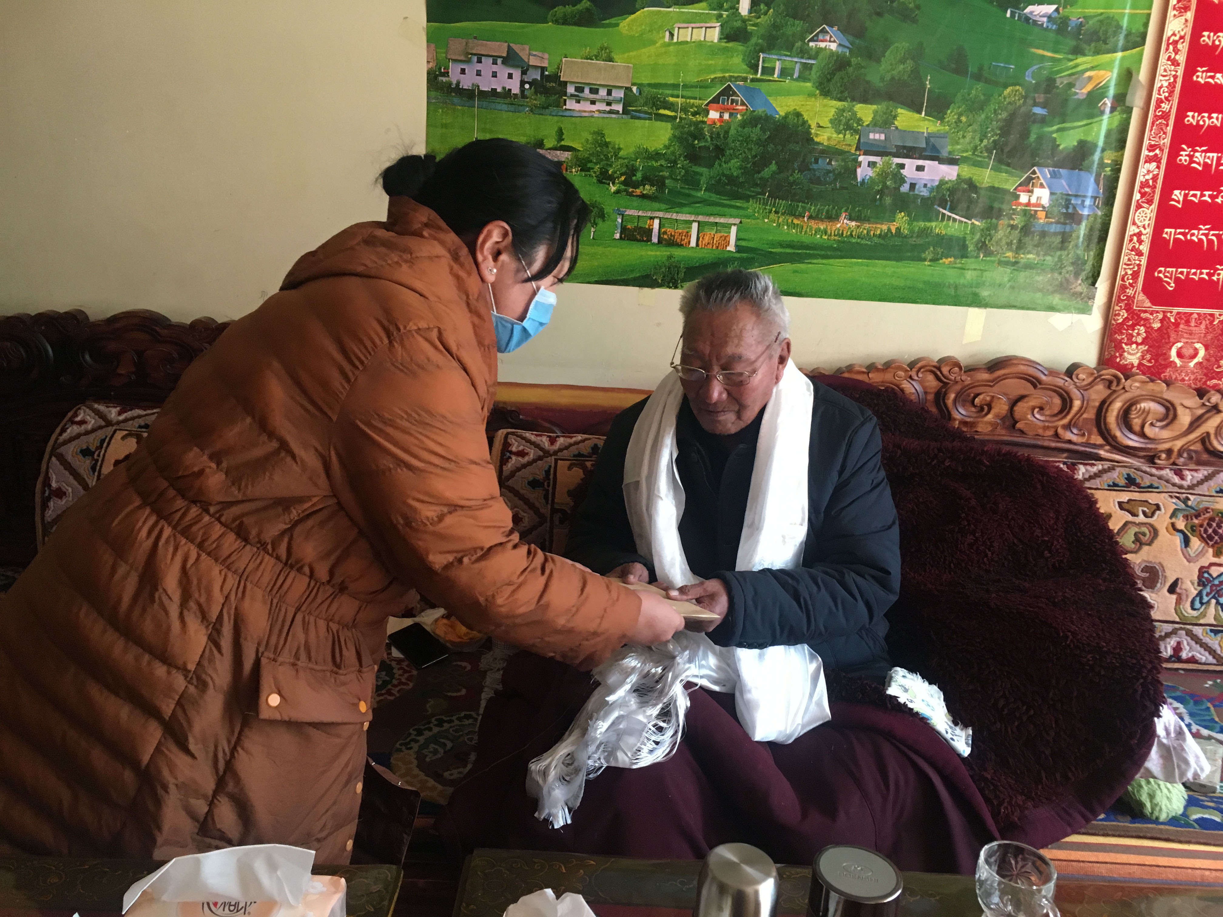 走訪中,黨委副書記、紀委書記德央與黨員親切交談,關切的詢問了他們的身體狀況和生活情況,認真聽取他們的意見和建議,并代表集團衷心祝愿老黨員們藏歷新年快樂、健康長壽,鼓勵他們積極克服困難,堅定信心,日子會越來越好。同時,還向他們宣傳了如何做好新型冠狀肺炎疫情防控工作的相關事項,提醒他們“少出門、勤洗手、戴口罩”,不去人多的地方,盡量不出門選擇居家封閉。老黨員們表示:感謝黨和組織對他們的關心,感謝集團黨委對生活上的幫助,將繼續(xù)用實際行動報答黨。