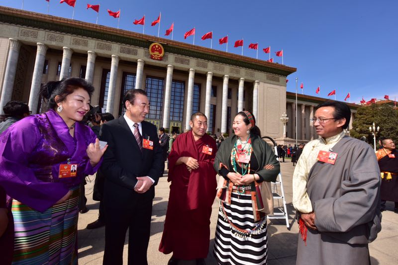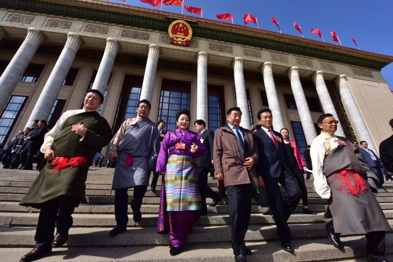 西藏全國政協(xié)委員們在閉幕會結(jié)束后信心滿滿走出會場。記者 旦增西旦 攝
