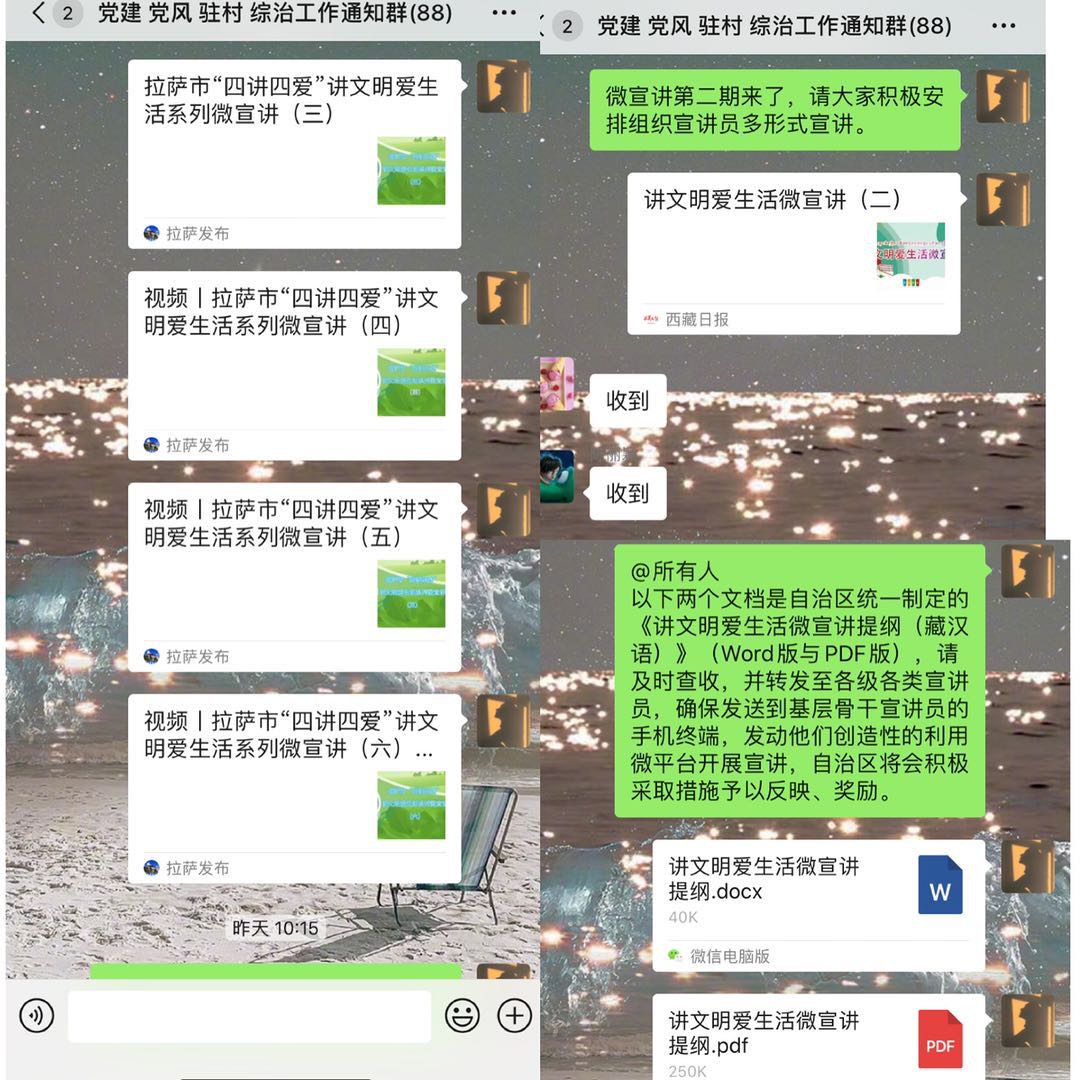自疫情防控工作開展以來,集團黨委高度重視,按照拉薩市“四講四愛”活動辦、市國資委“四講四愛”活動辦關(guān)于認真做好“四講四愛”主題教育實踐活動的微宣講工作要求。2月17日起積極把微宣內(nèi)容發(fā)布到集團工作微信群,并要求各子公司開展好微宣講活動。同時,積極轉(zhuǎn)發(fā)中央、自治區(qū)、拉薩市主要媒體的權(quán)威信息和宣傳報道,有針對性地開展新冠肺炎等傳染病防控知識宣傳,引導(dǎo)集團全體干部職工規(guī)范防控行為,做好個人防護,出現(xiàn)癥狀及時就診。